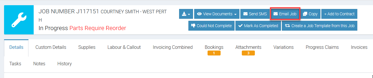 In this example, we created a Job Confirmation email template and we can use it by opening a job, and then click Email Job.