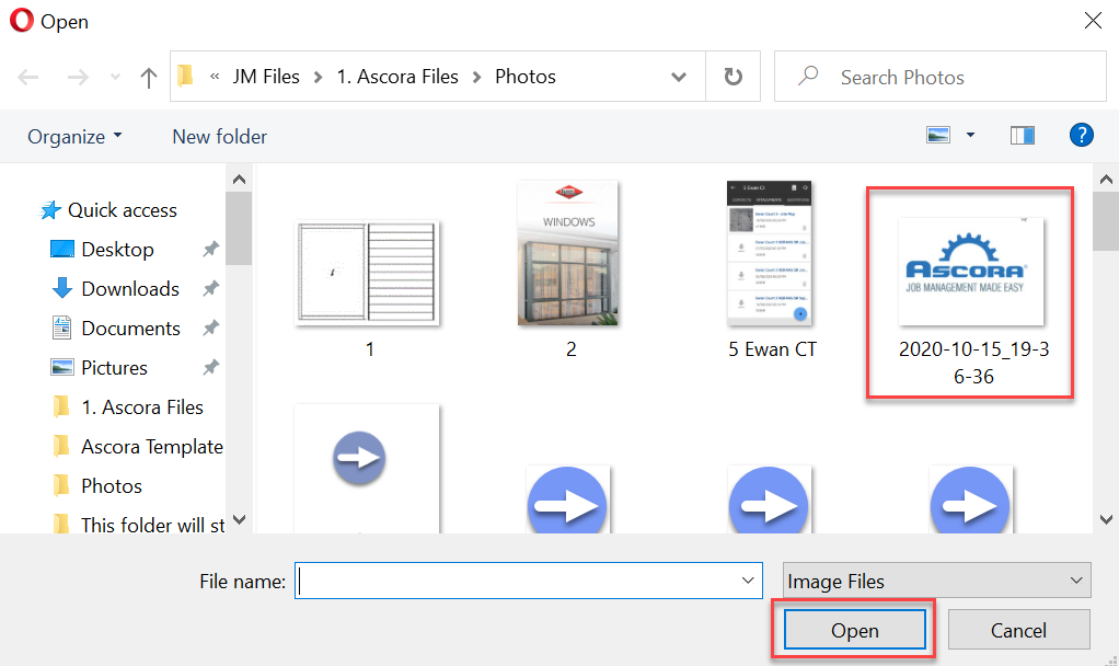2. Select the image from your computer and in this example, we are adding the Ascora logo.