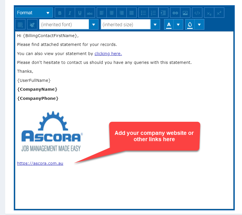 Ascora lets you send emails from various parts of the system—such as Scheduler, Jobs, Quotes, Customers, Invoices, and Enquiries—to ensure that your communications are both consistent and professional. This guide explains how to configure your Email Templates so that your messages automatically include the right details, images, and signatures. By following these steps, you'll be able to build templates that streamline your workflow and enhance clarity in your communications