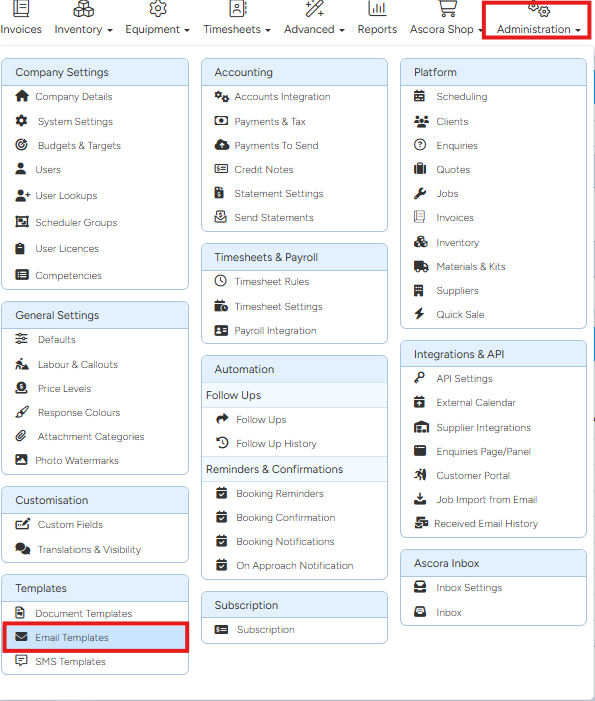 1. Go to Administration → Email Templates.