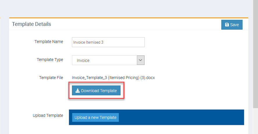 5. After updating your template, save it on your computer and go back to Ascora page in Administration โ Document Templates โ and click Upload a New Template and select the updated version that you just saved.