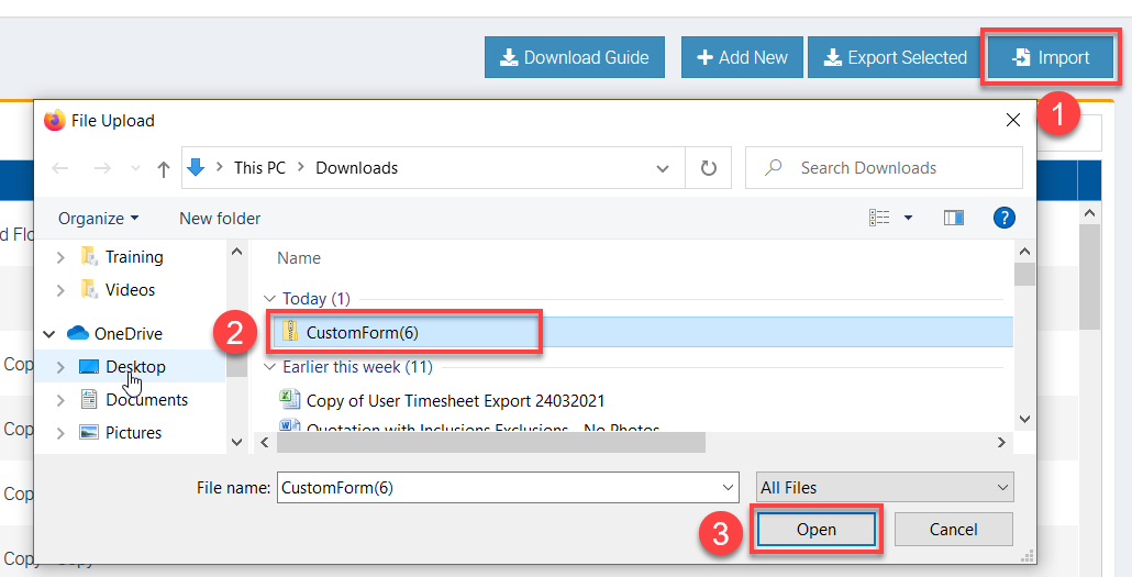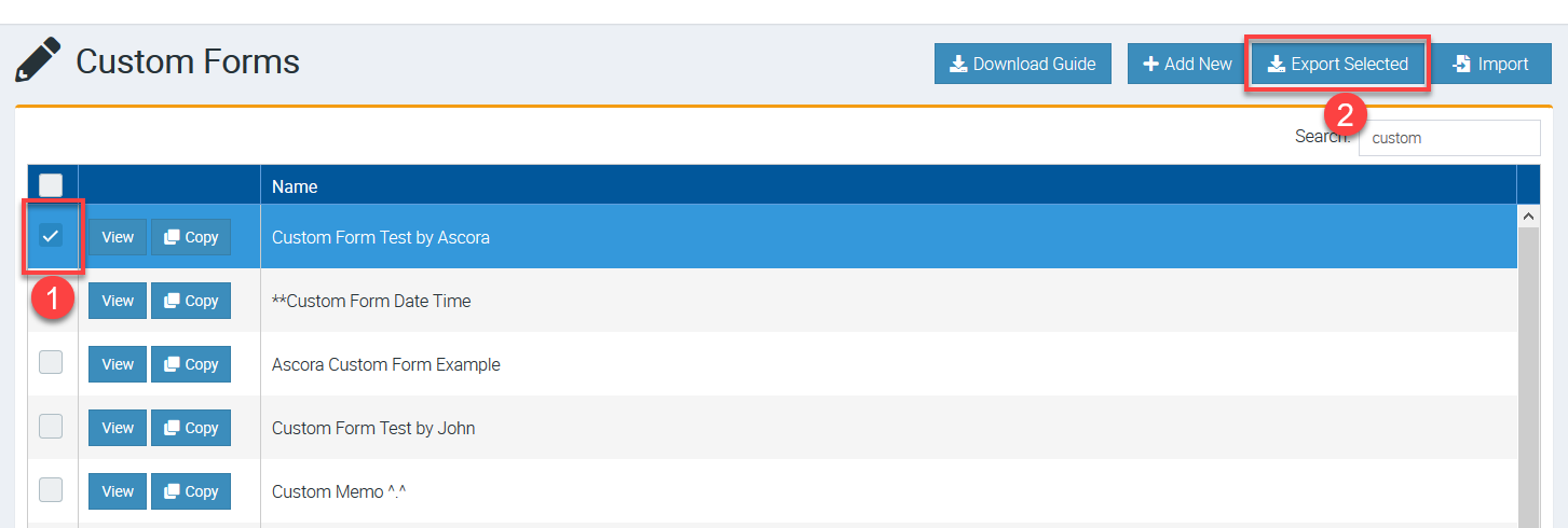 Follow the steps below to export and import Custom Forms quickly and efficiently.