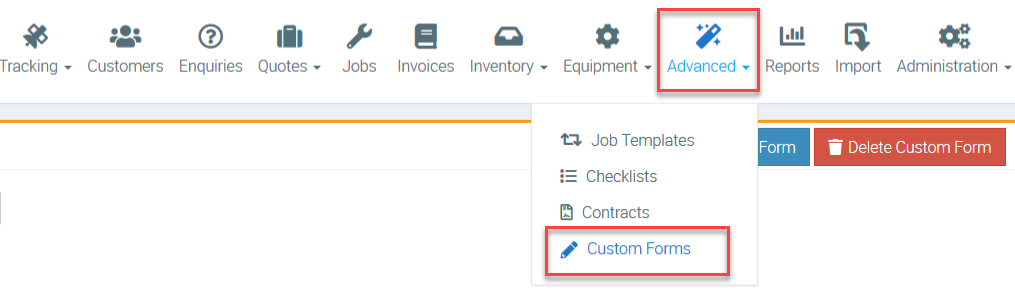 4. Log into your other account where you want to import the Custom Form and follow the same steps by going to Advanced → Custom Forms.