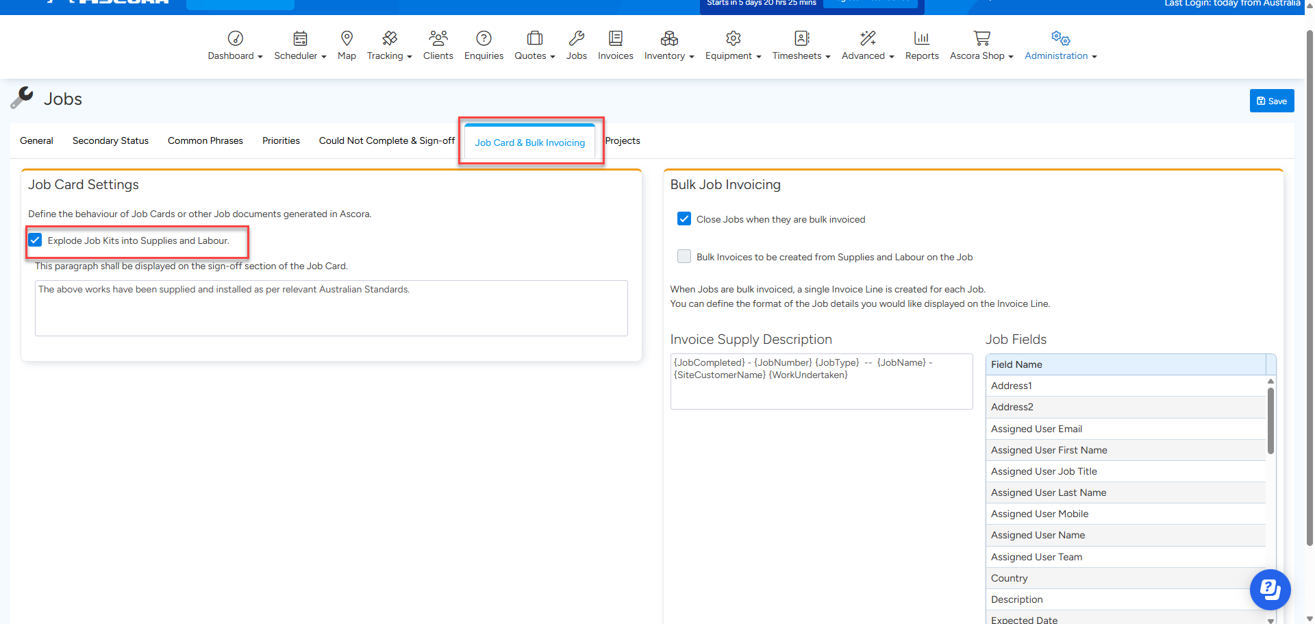 This can be found via Administration โ Jobs โ Job Card & Bulk Invoicing