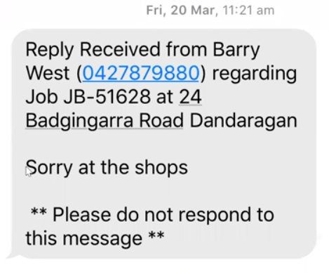 To streamline communication and ensure you receive replies, you can configure a designated email address or mobile number to capture incoming SMS responses. This ensures that important details such as customer name, contact number, and job/quote reference are included, allowing for quick follow-ups.