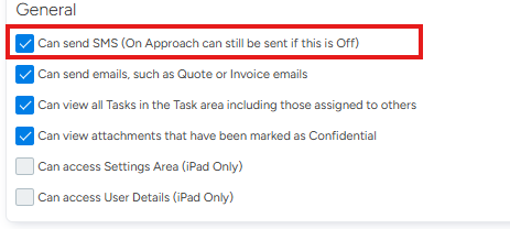 - Can send SMS (On Approach can still be send if this is Off)