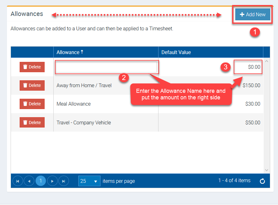 2. Click Add New located in Allowances area.