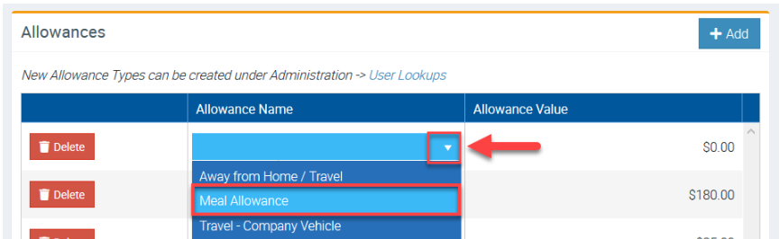 In this example, we are adding Meal Allowance to a user.