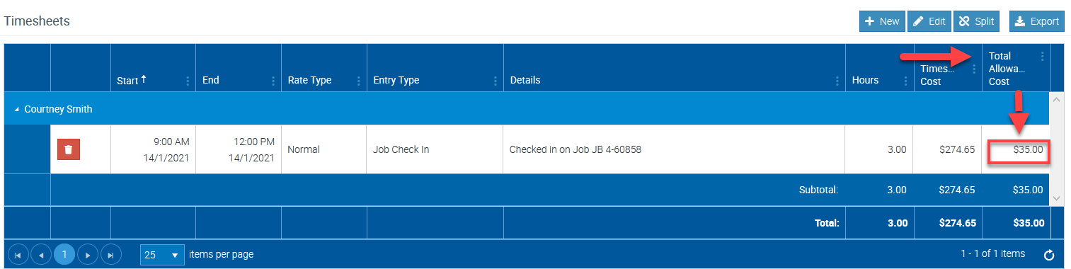 Adding Allowances from Timesheet Editing