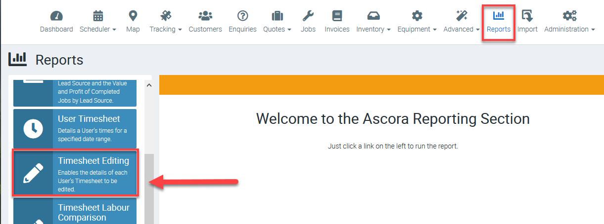 1. Go to Reports → Timesheet Editing.