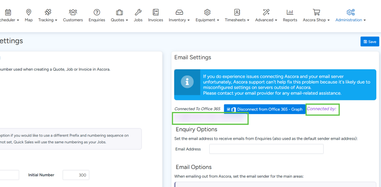 - Second, ensure that the email you are connected to is also listed in the Enquiry Options email address field.