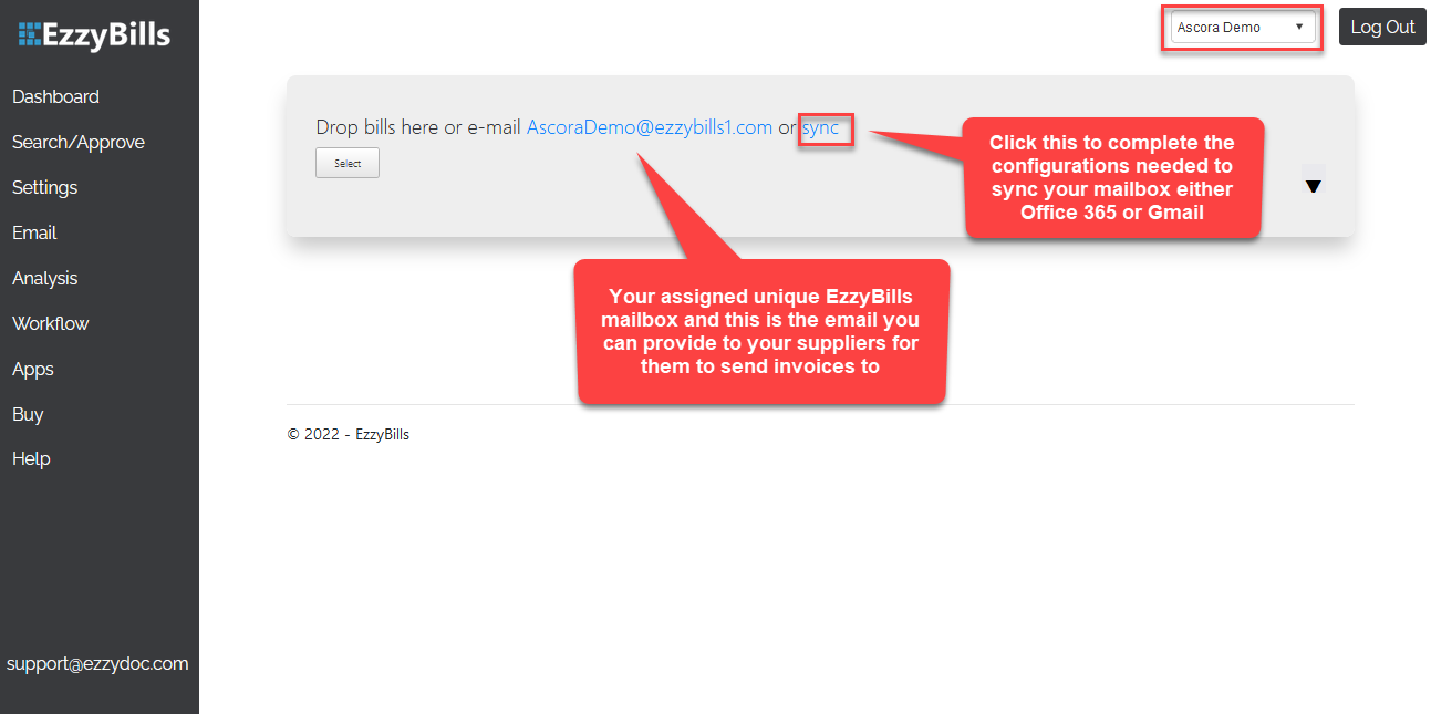 You'll be assigned your unique EzzyBills mailbox which you can provide to your suppliers and they can send invoices to that mailbox.
