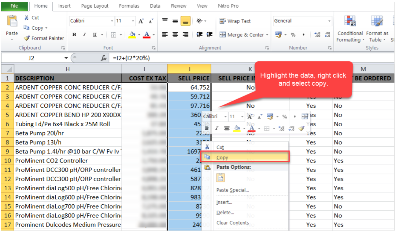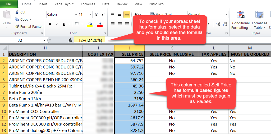 When you're using the Ascora Supply Import Template (see ⤴️ Importing Supply Price List ) to import your supplies or supply prices, it is important to ensure that you remove any formula based numerical data.