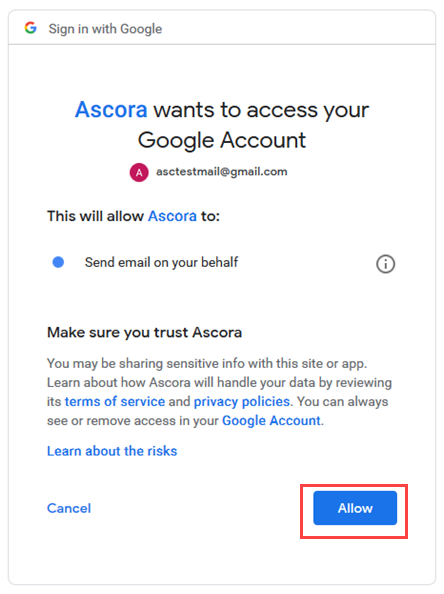 How to connect a Gmail account to Ascora