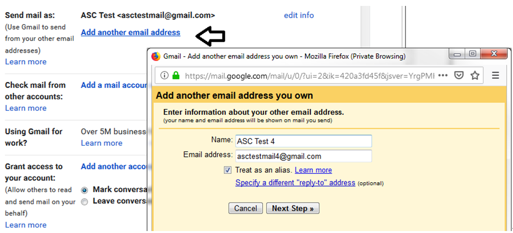 3. When you click on this link, a window will pop up and ask which the email address you would like to add.