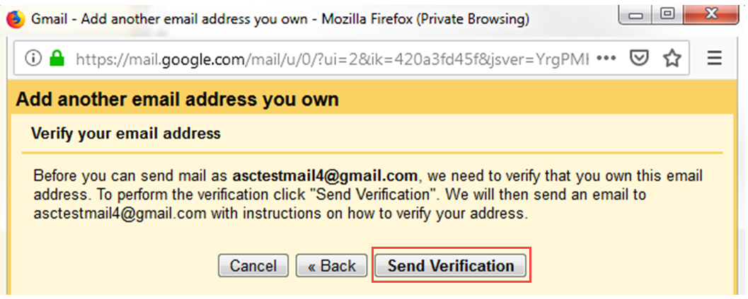 5. After clicking on Send Verification a new window will pop up asking for some information in regards to the email account you are trying to link.