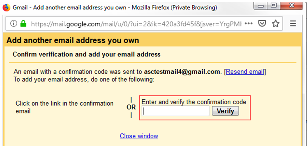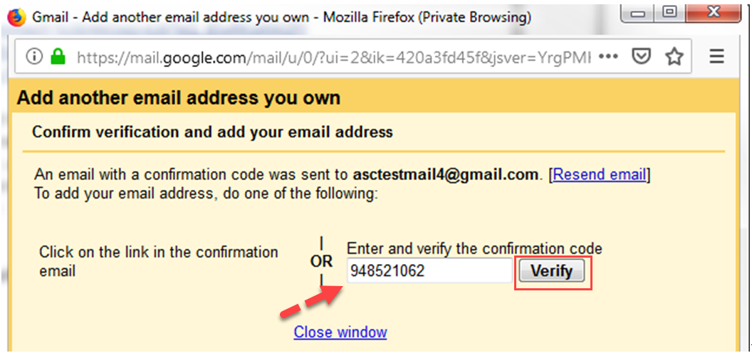 8. After copying this code, go back to the main email account and paste that code into the Enter and verify the confirmation code space provided. Click on Verify.