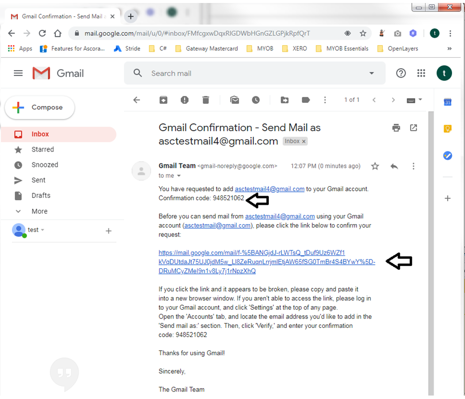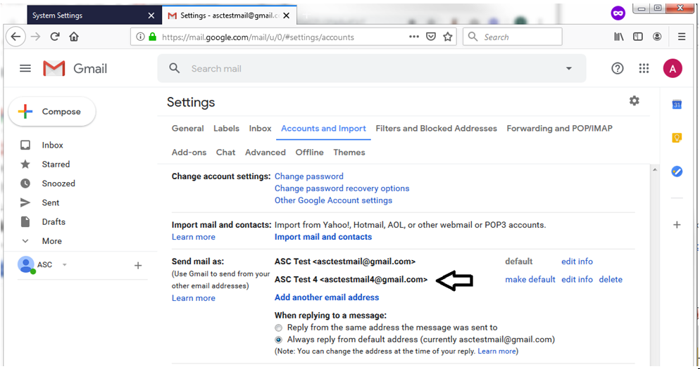 9. The window will now close and show that you have linked a new email address in Send mail as.