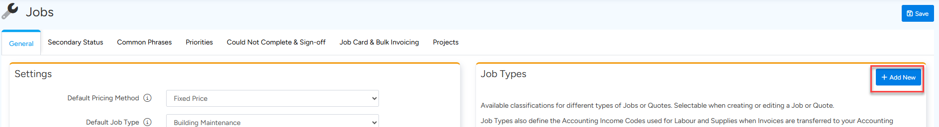 2. Click + Add New button in the Job Types section