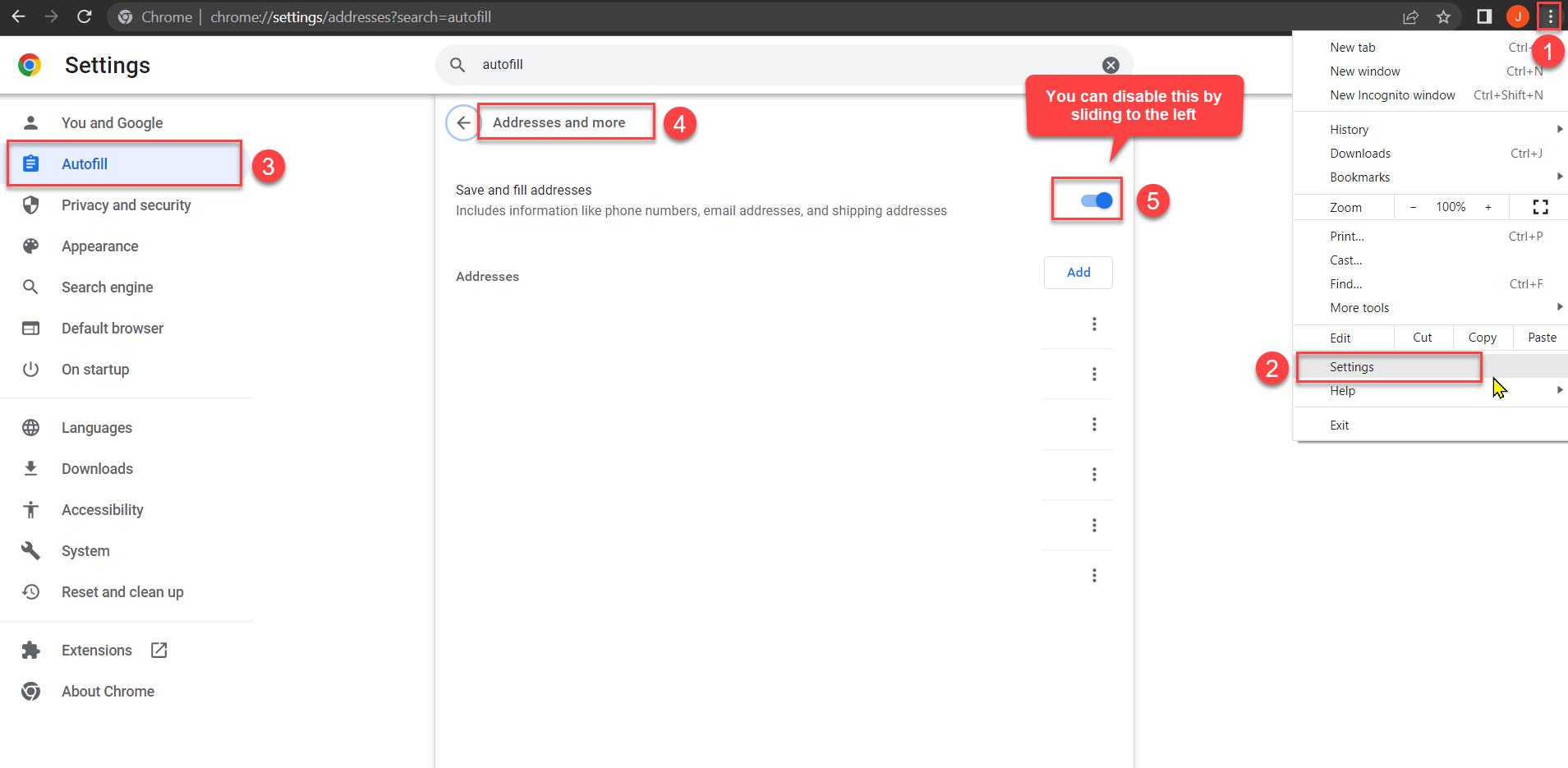 Autofill is driven by your browser settings which you can disable if it's causing unnecessary details to auto-fill every time you access some fields in Ascora such as address fields, contact number fields, etc. It's also best to disable auto-fill if it's causing latency whenever you access your Ascora screens to enter some information.
