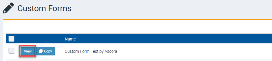 3. Select the custom form that you need to test and in this example, it's called Custom Form test by Ascora.