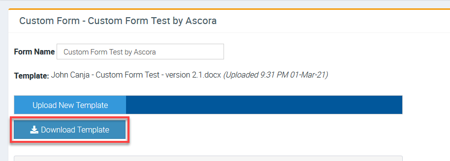 8. Save the updated custom form and upload it into Ascora by clicking Upload New Template.