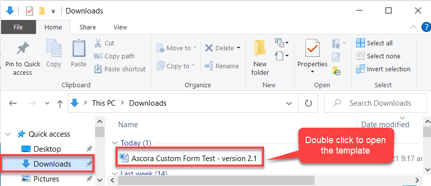 4. Depending on your computer settings, the template will open automatically otherwise, go to your download folder and open it manually.