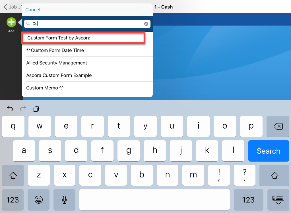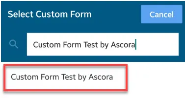 In this example, we are testing the custom form called Custom Form Test by Ascora.