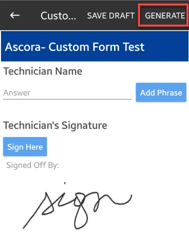 Ascora allows you to capture signatures directly within Custom Forms, ensuring compliance, accountability, and verification for job completions. Technicians and staff can sign off on forms using the Ascora mobile app (Android and iOS), making it easy to document approvals and confirmations on-site.