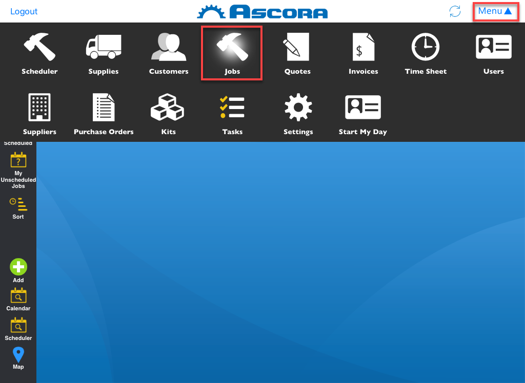 1. Access your job from the mobile app by tapping Menu → Jobs.