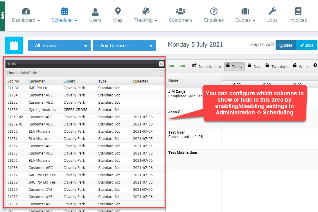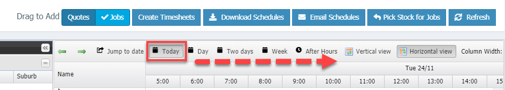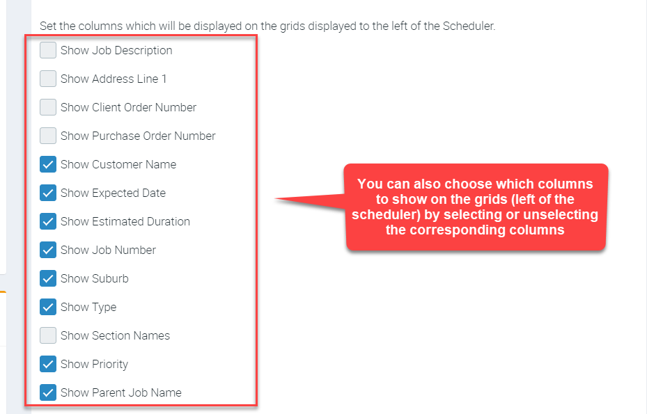 There are a few settings that you can enable or disable in Scheduler View depending on your requirements. From showing all incomplete jobs to viewing with after hours and many more.