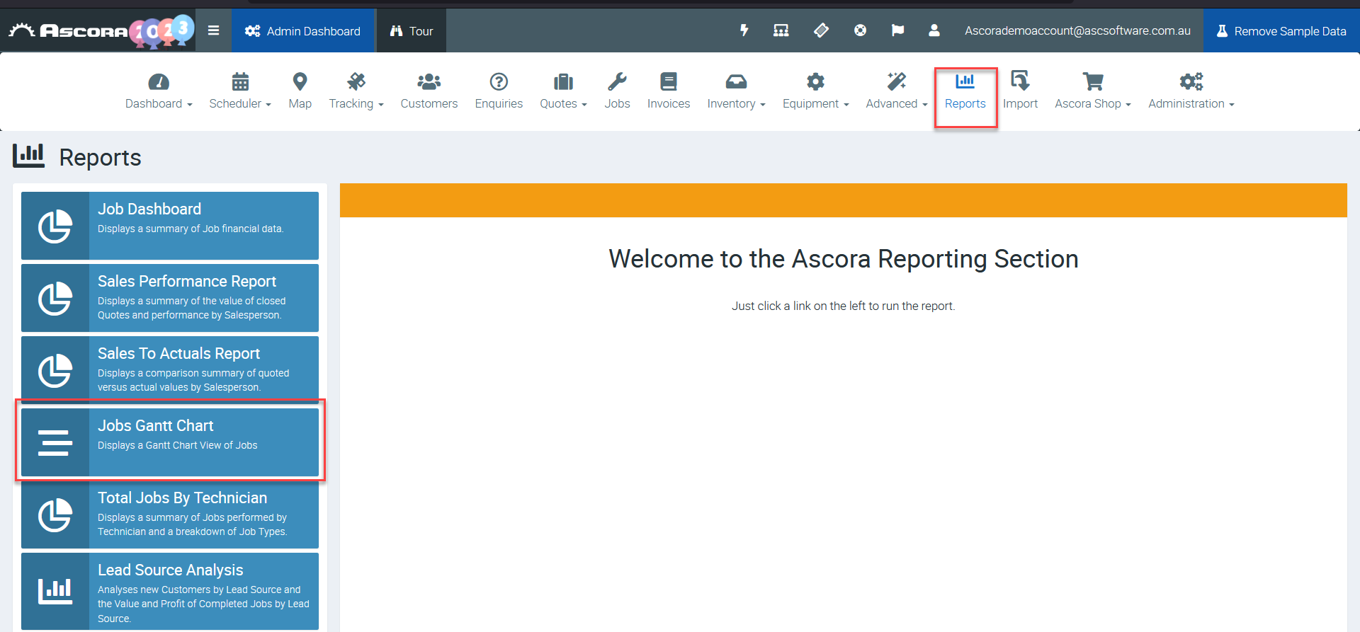 Another way to access Gantt Chart is to go to Reports and select Jobs Gantt Chart from the reports list.