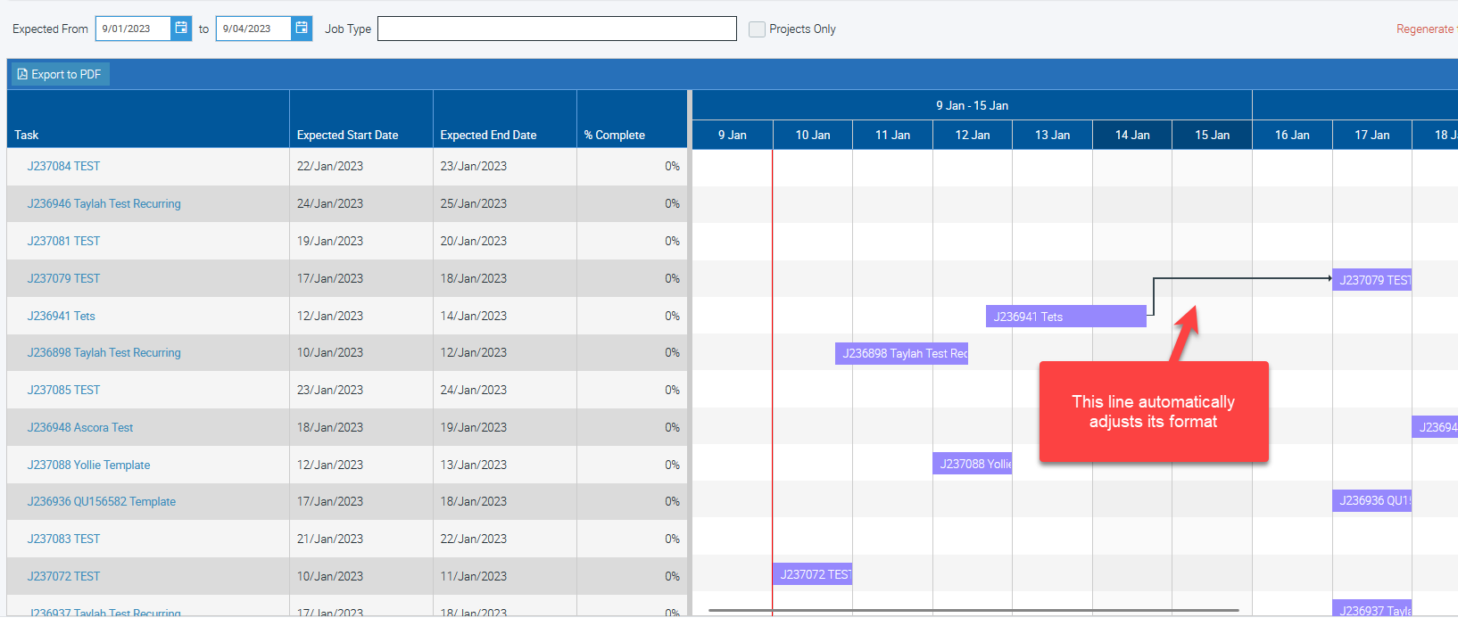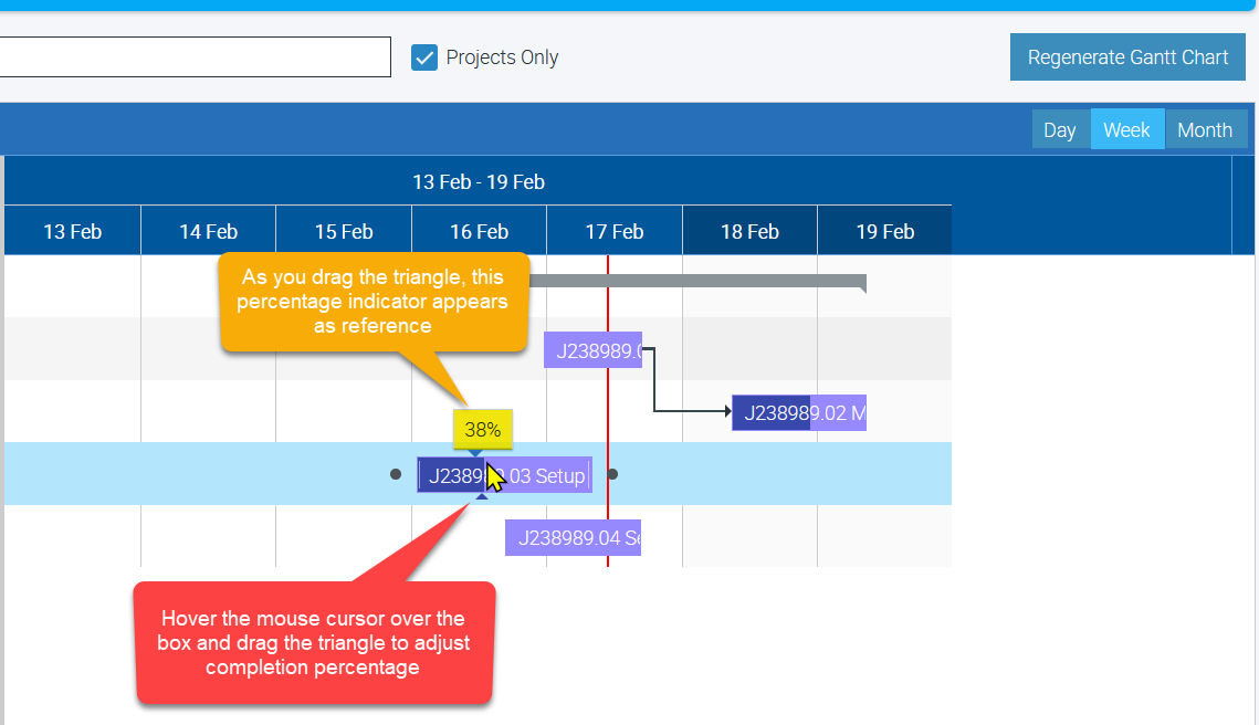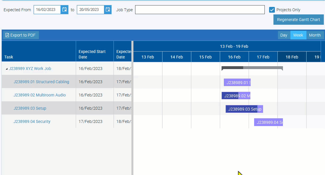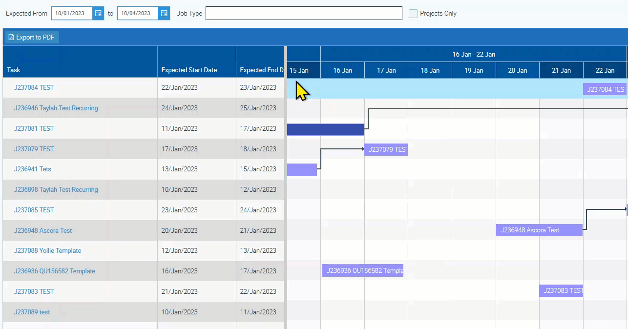 Projects are your section-based or stage-based jobs which you can display by ticking the box beside "Projects Only" and clicking on the "Generate Gantt Chart" button.