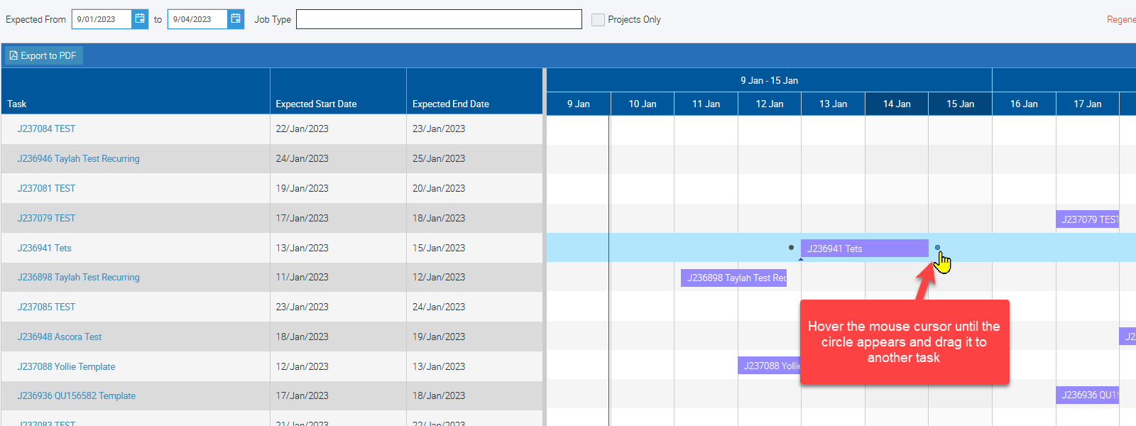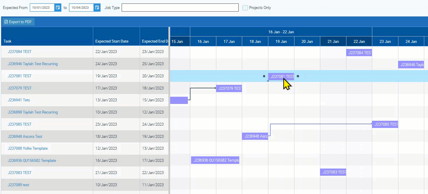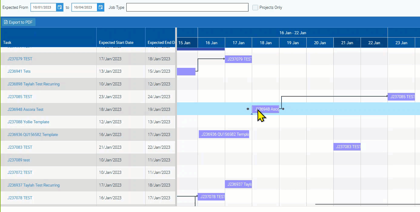 - Adjust job schedules easily with drag-and-drop functionality.