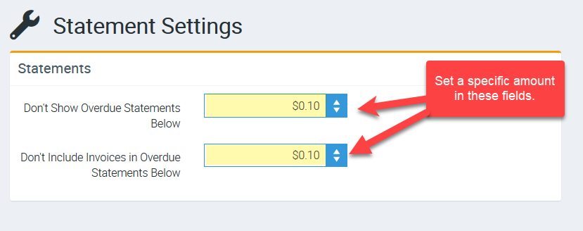 - Don't Include Invoices in Overdue Statements Below an X amount.