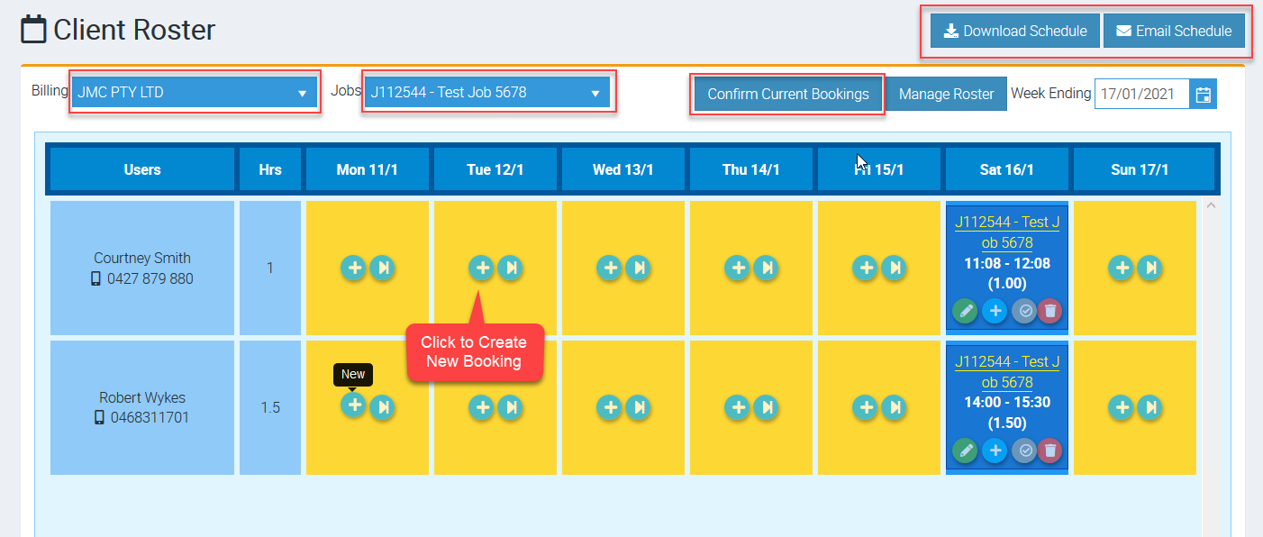 - Confirm Current Bookings - to confirm all visible unconfirmed bookings which will generate a timesheet for each unconfirmed booking displayed on the roster.