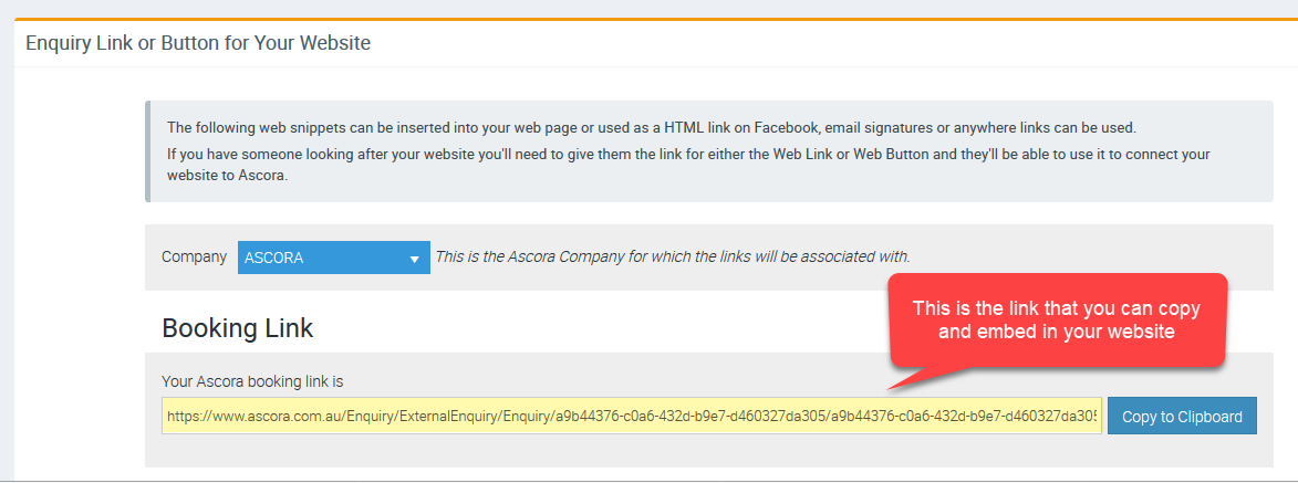 2. Copy the booking link and you can insert that into your website or perhaps add that in your email signature.