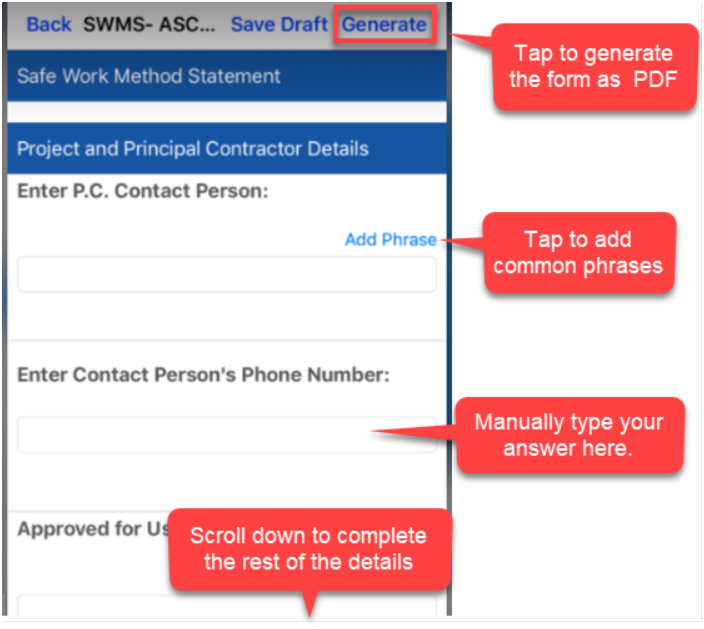 4. Once the custom form is displayed, enter the necessary details and once done, tap GENERATE and it will create the form as PDF.