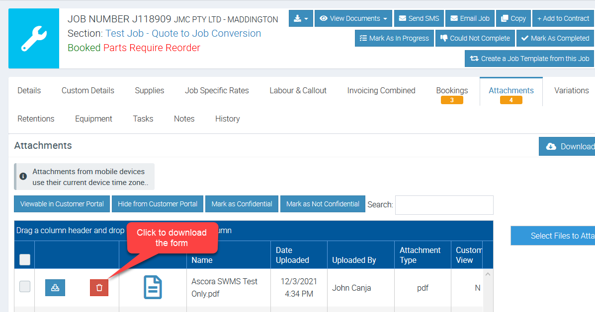 3. Search and select the custom form that you need to test and in this example, it's called SWMS - ASCORA.
