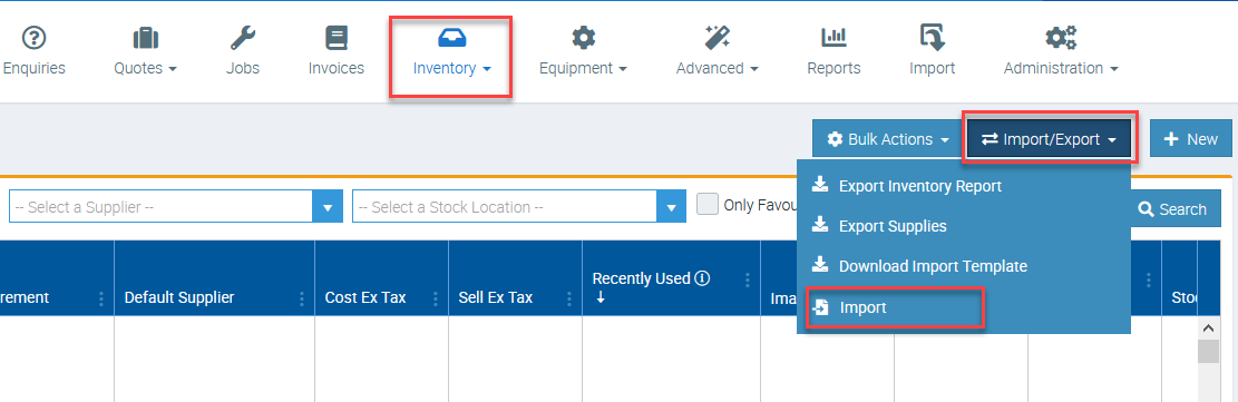6. Save the updated file and go back to Inventory → Supplies → but this time, select Import and markup for the selected supply category should update accordingly.