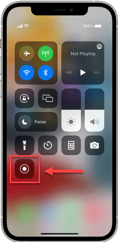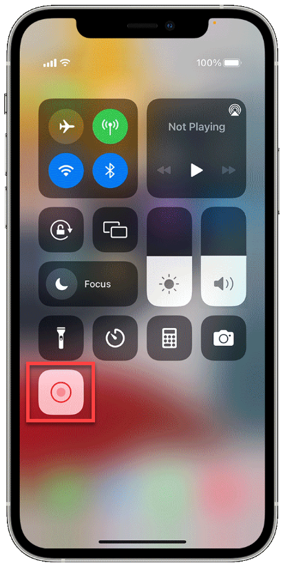 2. Access your iPhone Control Centre and touch and hold the grey Record button .