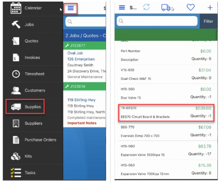 From your iOS Mobile App, access the job details screen and tap Supplies → Action → Scan Barcode.
