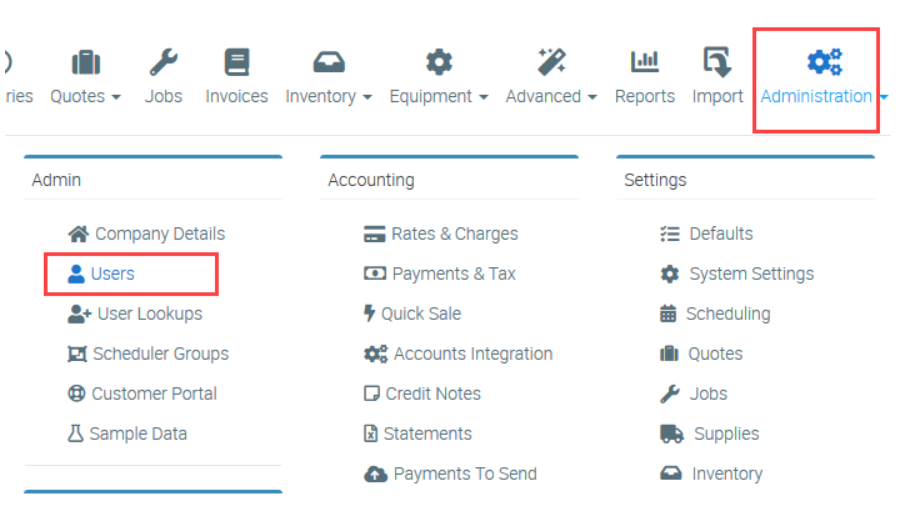 1. Go to Administration → Users.