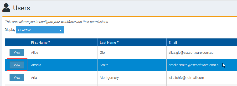 2. Click View beside the user name that you need to set as Inactive.