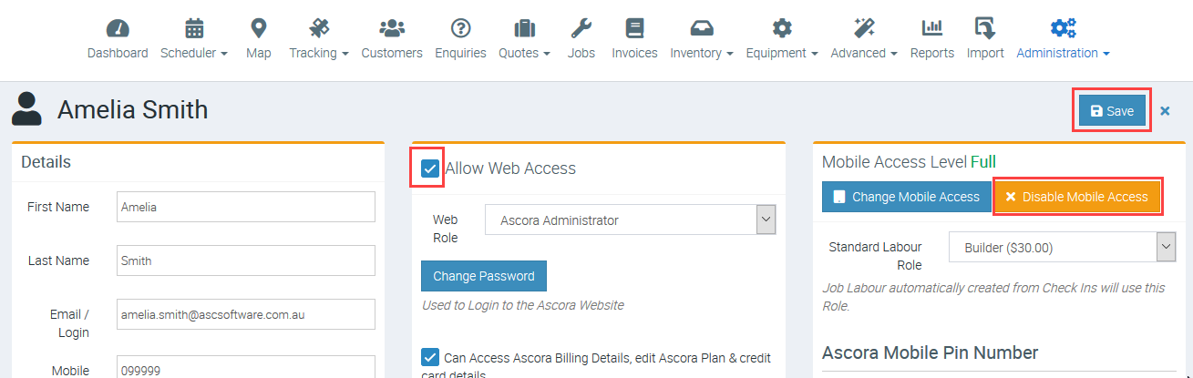 How to Disable a User in Ascora: