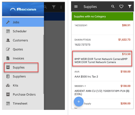The Ascora Android app allows you to streamline supply management by scanning barcodes to add materials directly to jobs. This feature saves time, reduces manual data entry, and ensures accurate tracking of supplies used on-site. You can also add barcodes to supplies within the app, making it easy to build your inventory while working in the field.