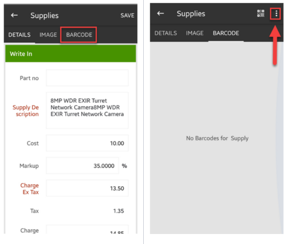 You also have the option to add barcodes from the Mobile App and this is helpful if you have a lot of supply items to add to a certain job and you only have access to a Mobile App.