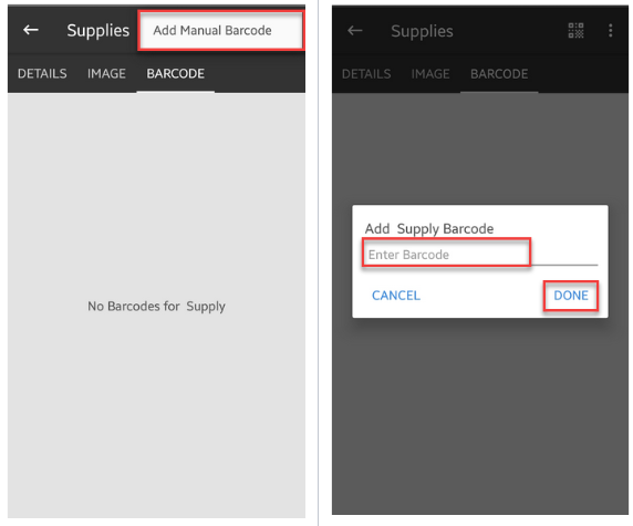 3. Tap Add Manual Barcode and enter the barcode details and tap Done.