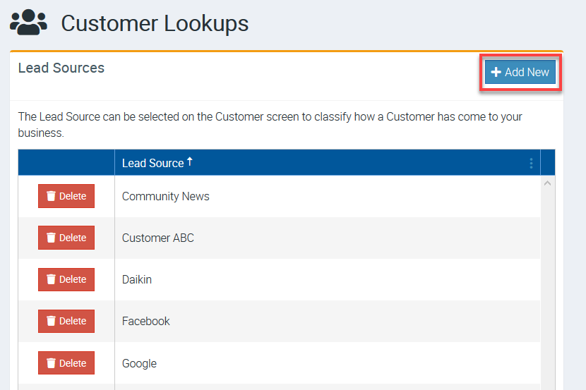 1. Go to Administration → Customers and click Add New under Customer Lookups.